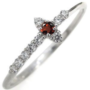 1月誕生石ガーネットとダイヤモンドを贅沢に使用した、18金製のクロスモチーフリング(指輪)です。