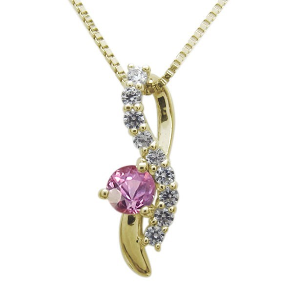 9月誕生石ピンクサファイアを使用した10金製の、結婚10周年にお勧めメモリアルネックレスペンダント。