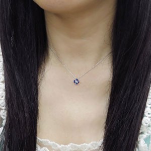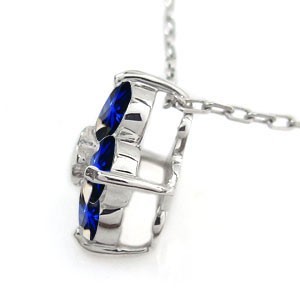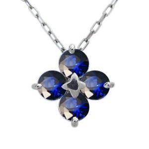9月誕生石サファイアを使用したプラチナ製の、フラワー(花)モチーフネックレス(ペンダント)です。
