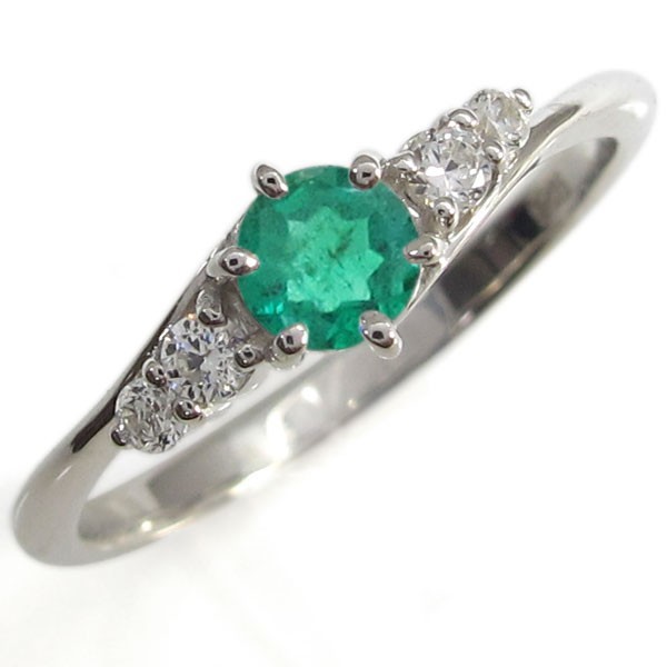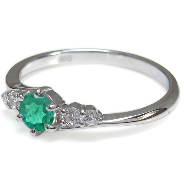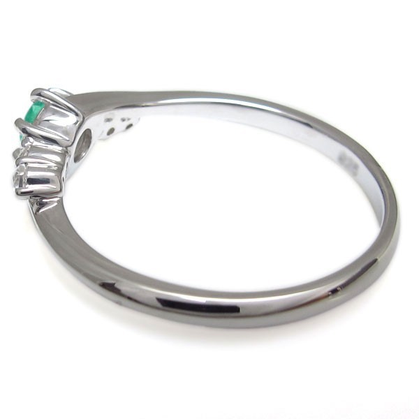 5月誕生石エメラルドを使用しプラチナ製の、シンプルデザインリング(指輪)です。