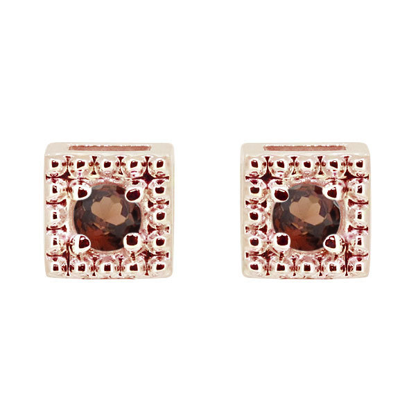 ピアス スクエア シンプル ガーネット 1月誕生石 スタッドピアス レディース 10k 両耳用