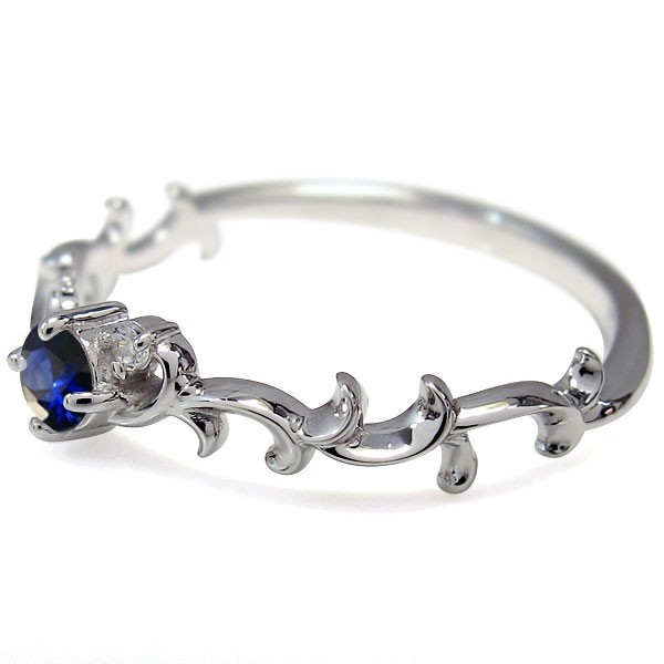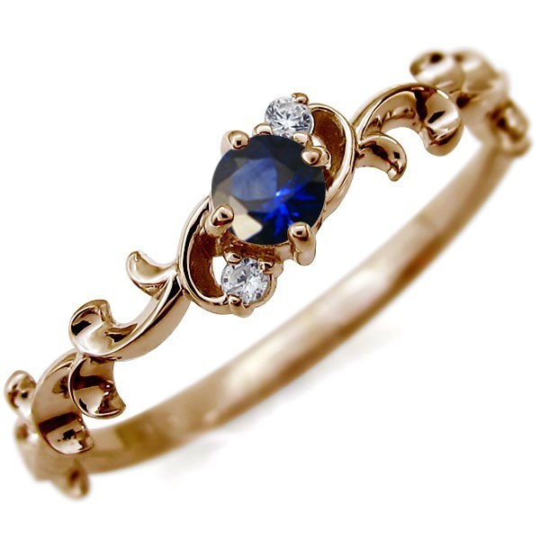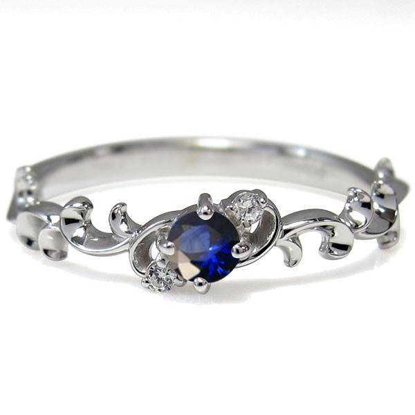 9月誕生石サファイアを一粒使用した、アラベスクデザインの10金製リング(指輪)です。