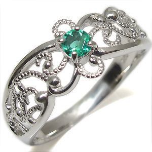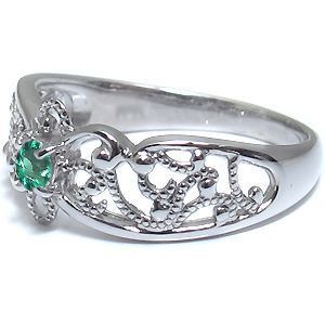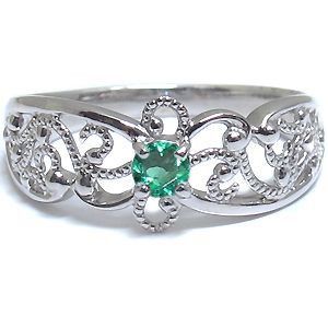 5月誕生石エメラルドを一粒使用したミル打ちを施したアンティークデザインの10金製リングです。