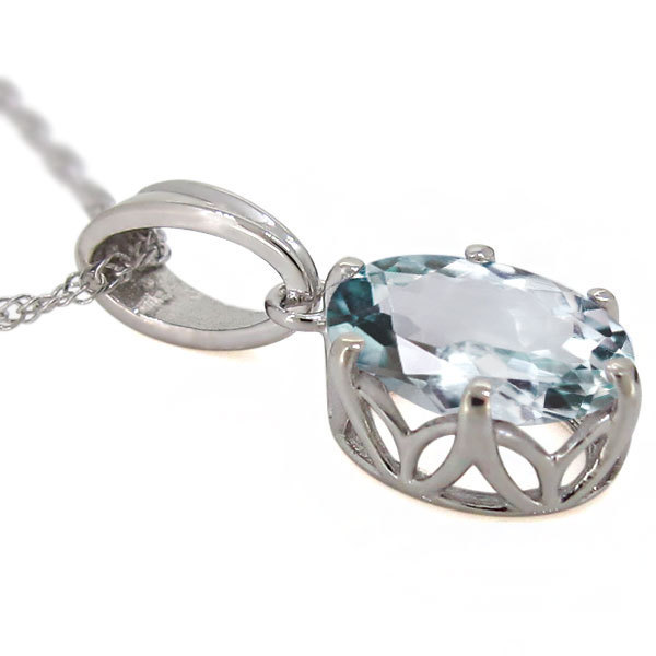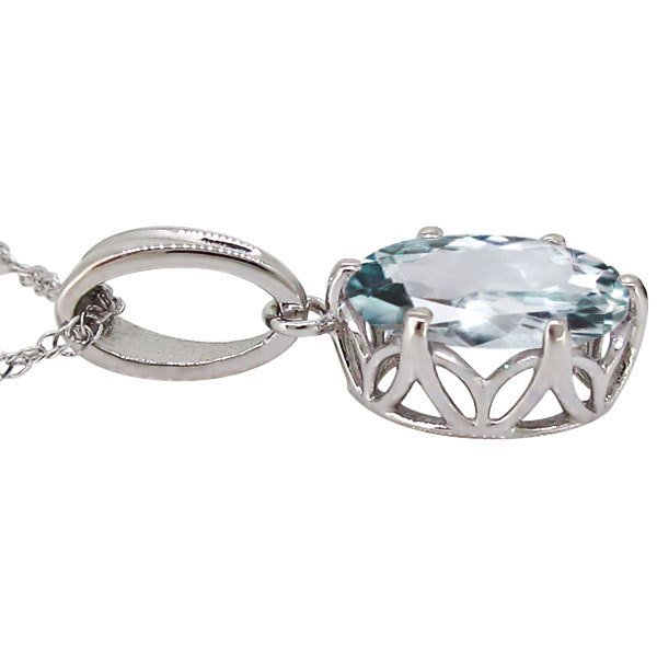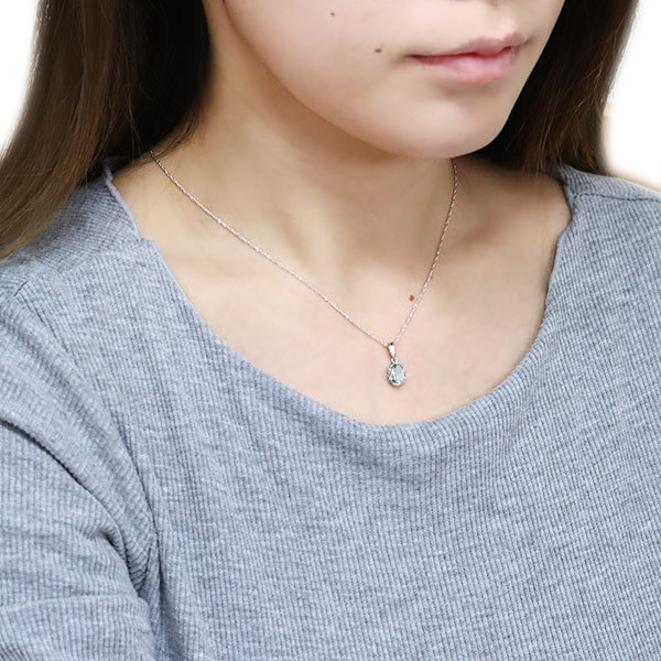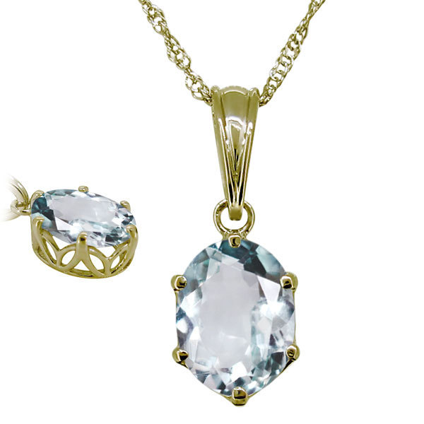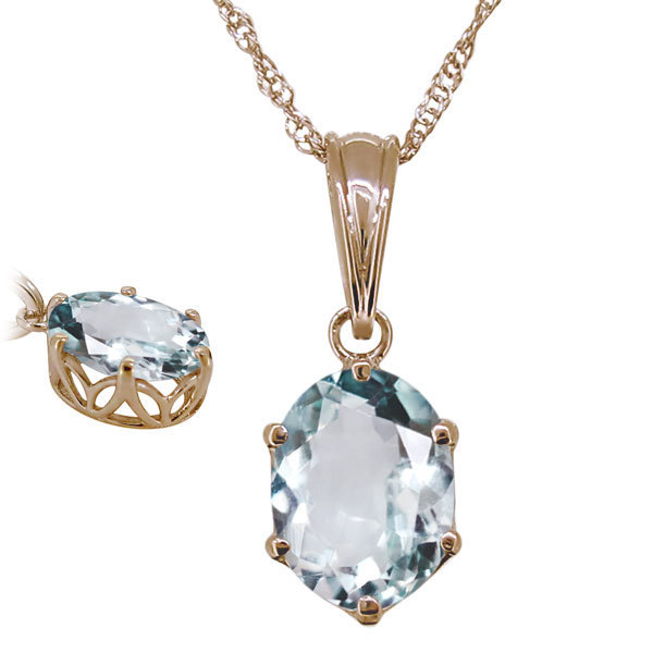 3月誕生石アクアマリンを使用した10金製の、オーバルデザインネックレス(ペンダント)です。