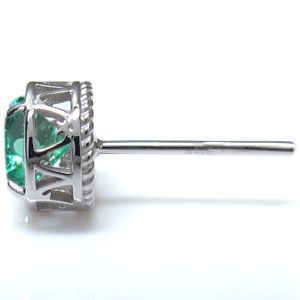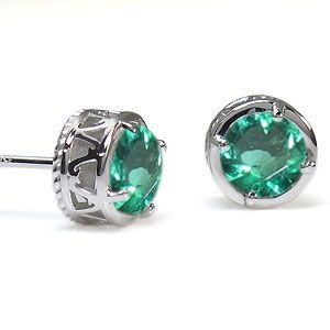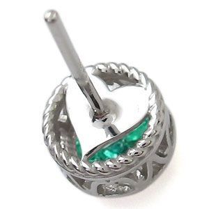 5月誕生石エメラルドを一粒使用した唐草模様のプラチナ製ピアスです。