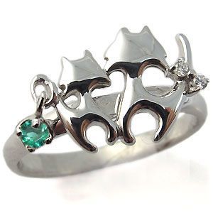 5月誕生石エメラルドを一粒使用したネコ(猫)デザインの10金製リングです。