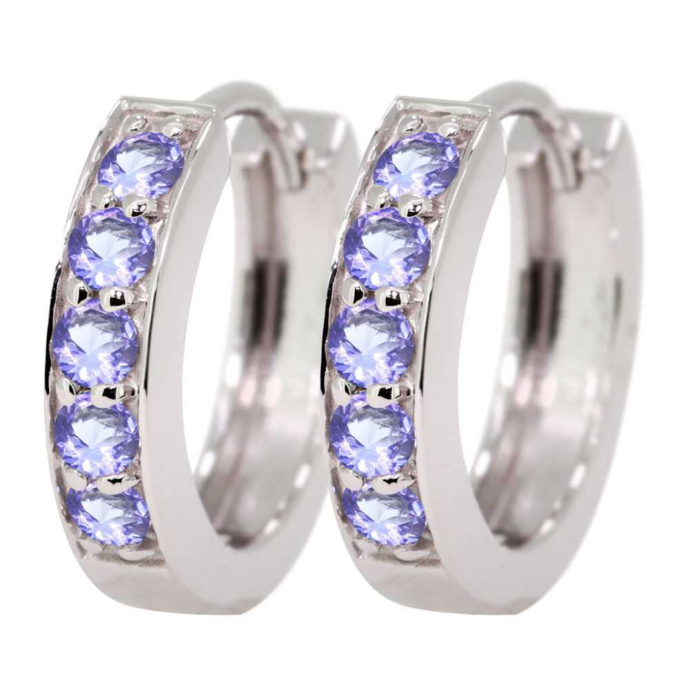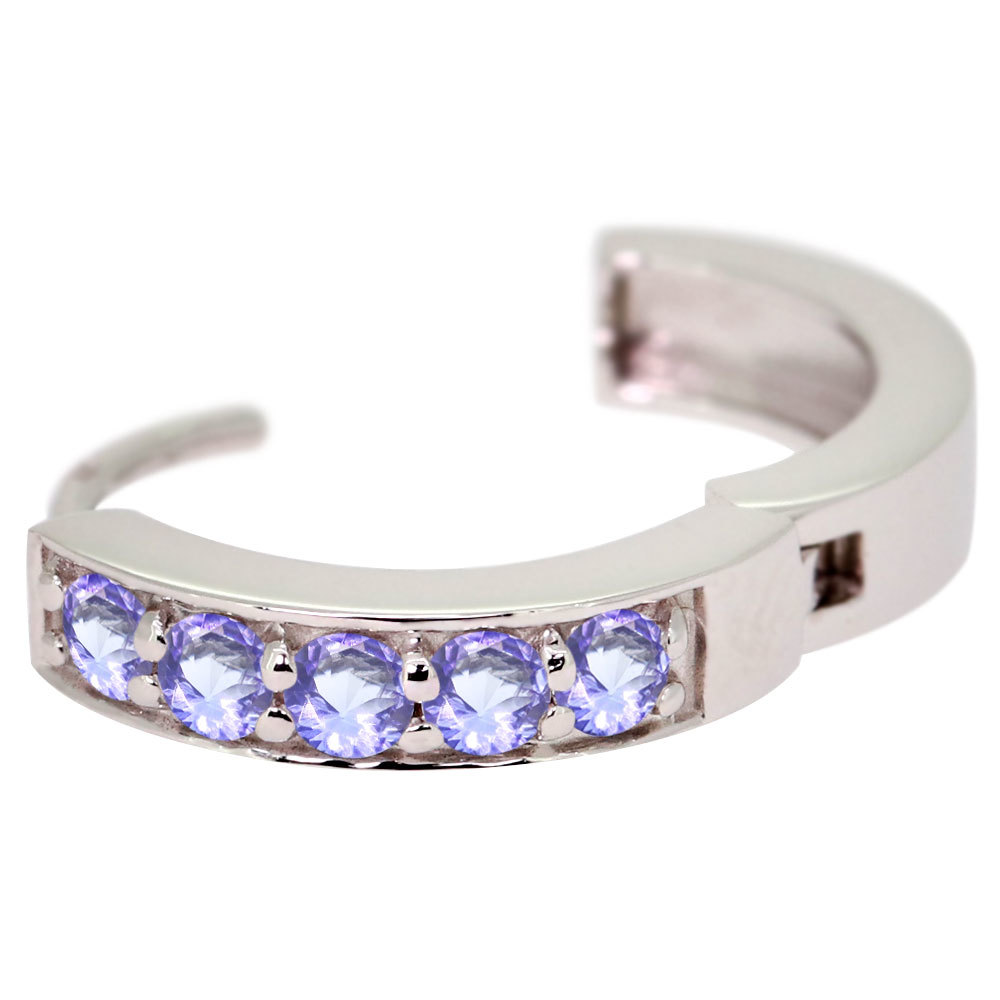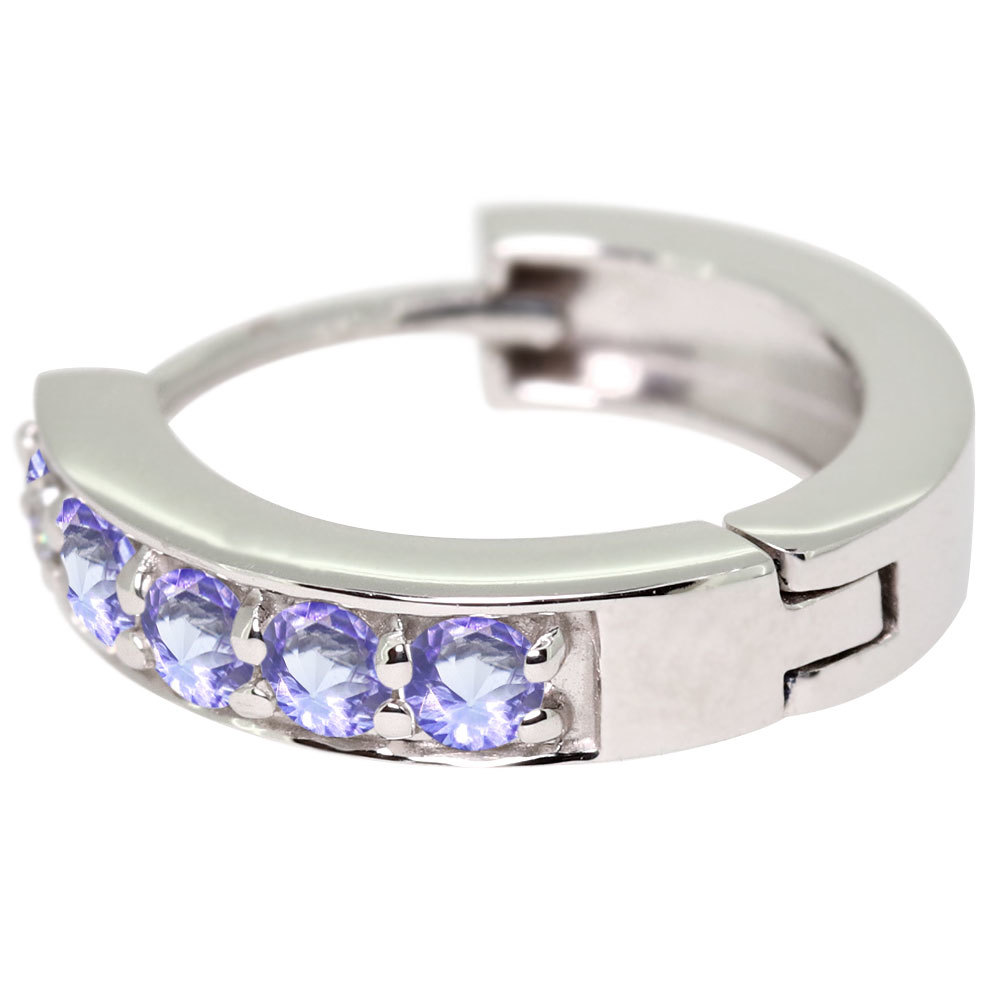 12月誕生石タンザナイトを使用した18金製の、ハーフエタニティタイプのレディースフープピアスです。