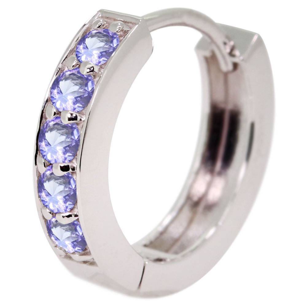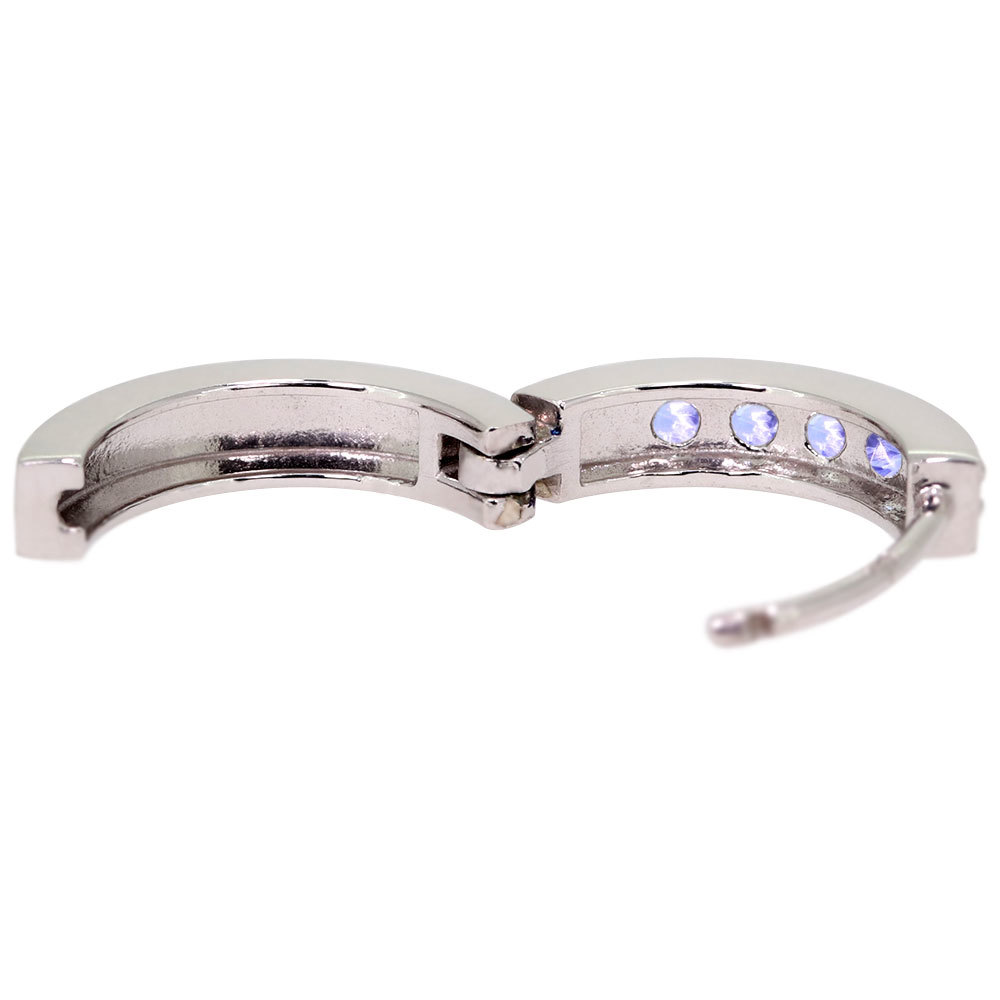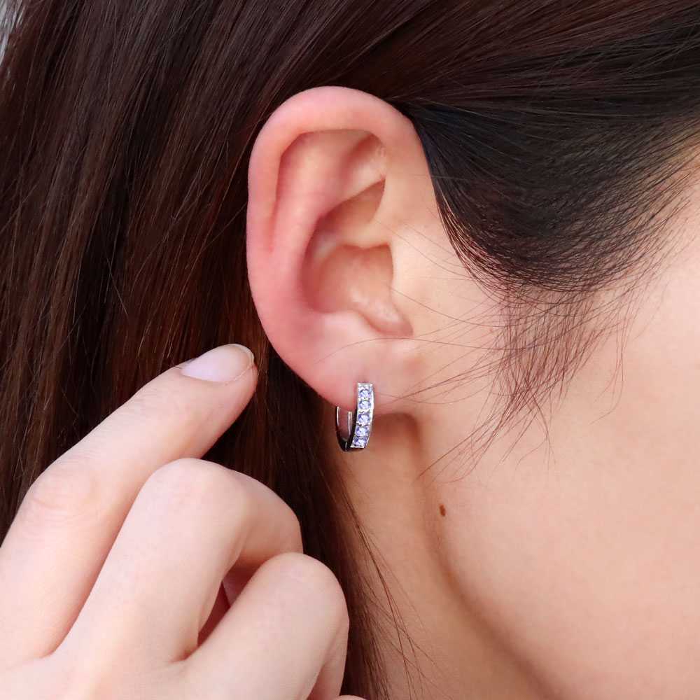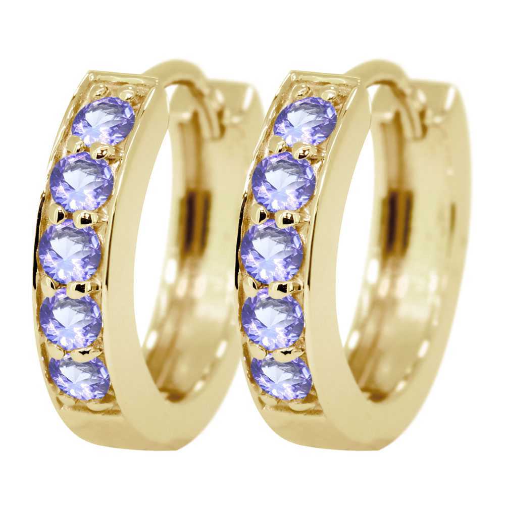 12月誕生石タンザナイトを使用した18金製の、ハーフエタニティタイプのレディースフープピアスです。