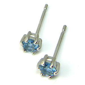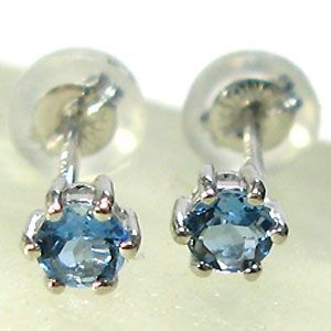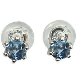 3月誕生石サンタマリアを一粒使用したシンプルデザインのプラチナ製ピアスです。
