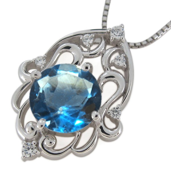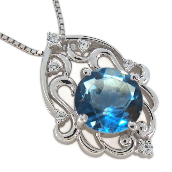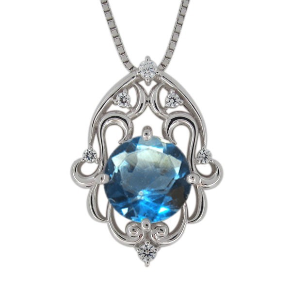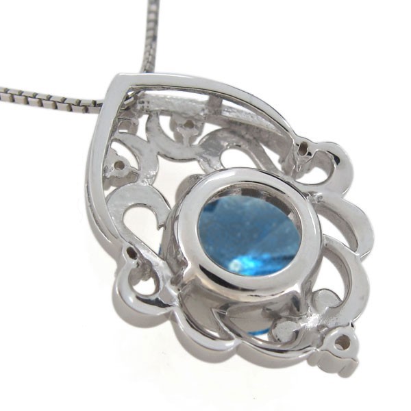 11月誕生石ブルートパーズを一粒使用したプラチナ製の、唐草(アラベスク)モチーフのネックレスペンダントです。