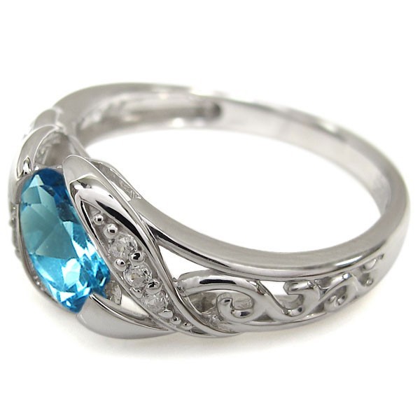 ■石名:主石 ブルートパーズ(オーバル 約 5.0mm×7.0mm/天然石使用)脇石 ダイヤモンド(6石合計で約 0.06ct/天然石使用)