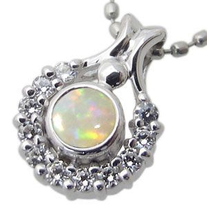 10月誕生石オパールを一粒使用した18金製馬蹄(ホースシュー)デザインネックレスペンダントです。
