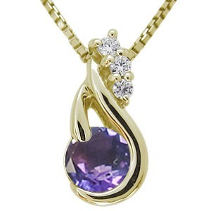 2月誕生石アメジストを一粒使用した、10金製のエレガントなネックレスペンダントです。