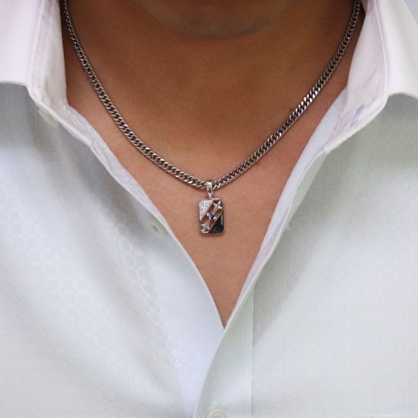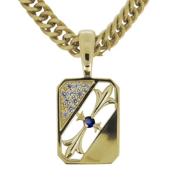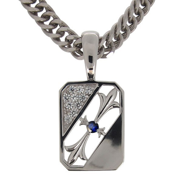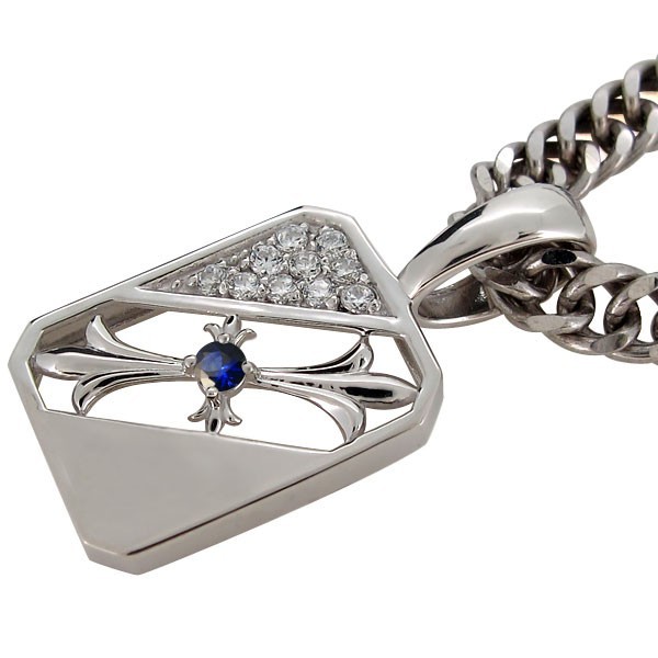 9月誕生石サファイアを使用したシルバー製の、クロス(十字架)モチーフメンズネックレス(ペンダント)です。