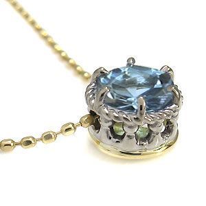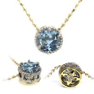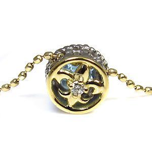 3月誕生石アクアマリンサンタマリアを一粒使用した、百合の紋章モチーフの18金製リバーシブル・コンビネックレスペンダントです。