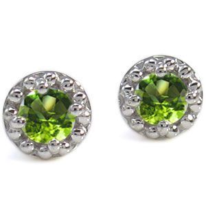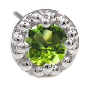 ミル打ち ピアス 一粒 ピアス ペリドット K10