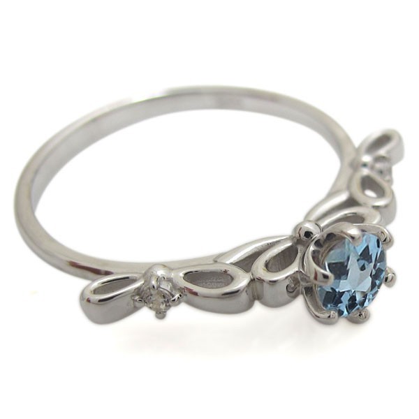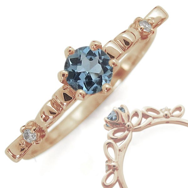 ■石名:主石 アクアマリンサンタマリア(約 4.0mm/天然石使用)脇石 ダイヤモンド(2石合計で約 0.029ct/天然石使用)