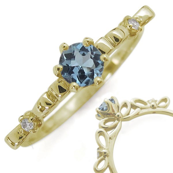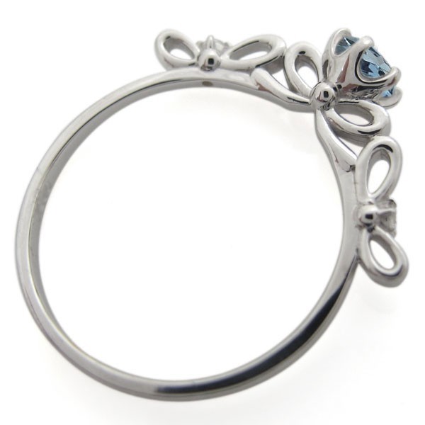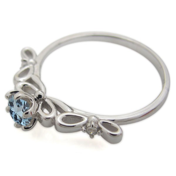 3月誕生石アクアマリンサンタマリアを使用した10金製の、リボンモチーフリング(指輪)です。