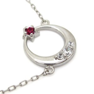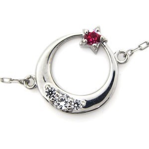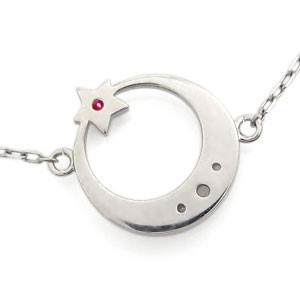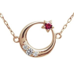 7月誕生石ルビーを使用した、18金製の三日月(ムーン)星(スター)モチーフネックレスペンダントです。