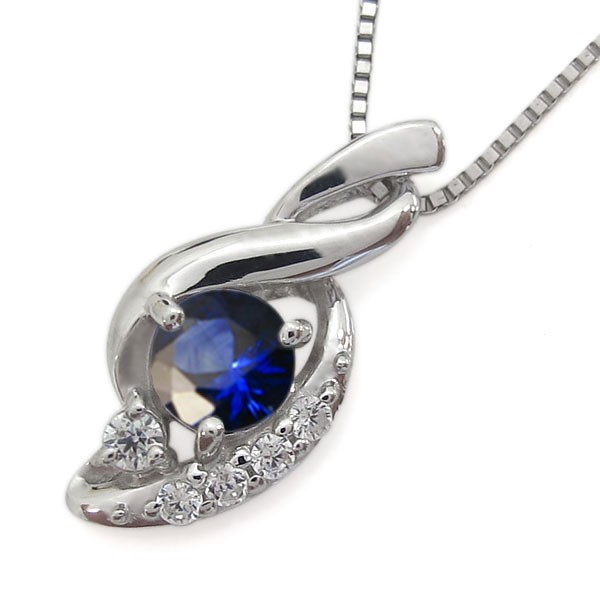 9月誕生石サファイアを一粒使用した、18金製のエレガントなネックレスペンダントです。