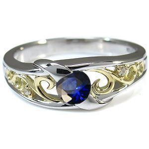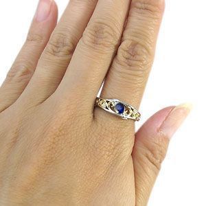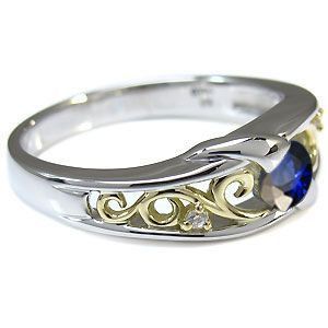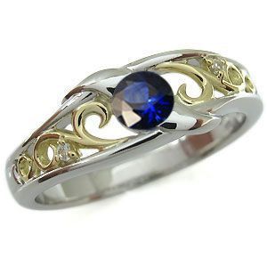 コンビ リング プラチナ 18金 一粒 サファイア 指輪 クリスマス ポイント消化