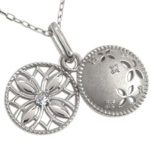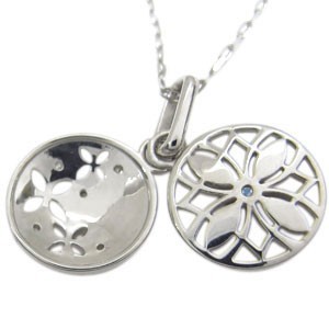 6月誕生石ロイヤルブルームーンストーンを使用し、花(フラワー)をモチーフにした、プラチナ製ロケットネックレスペンダントです。