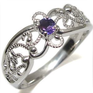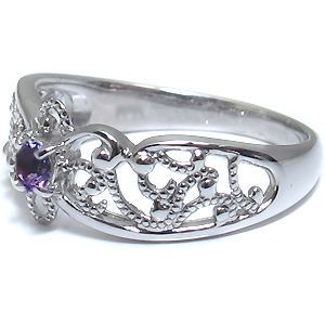 2月誕生石アメジストを一粒使用したミル打ちを施したアンティークデザインの18金製リングです。