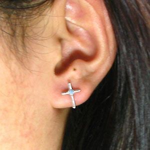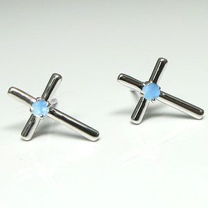 ロイヤルブルームーンストーンメンズピアス クロス 10金