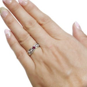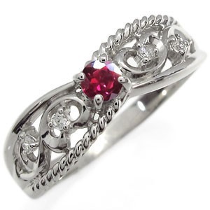 ■石名:主石 ルビー(約 3.0mm/天然石使用)脇石 ダイヤモンド(4石合計で約 0.04ct/天然石使用)