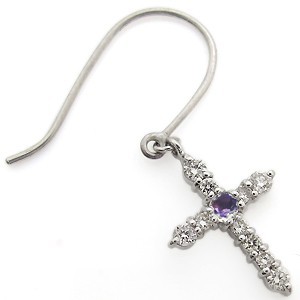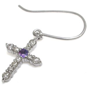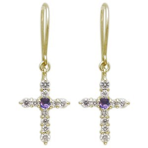 クロス ピアス フック ピアス 10金 アメジスト ピアス
