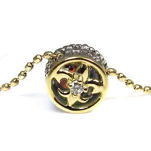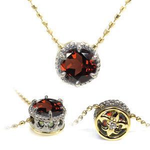 1月誕生石ガーネットを一粒使用した、百合の紋章モチーフの18金製リバーシブル・コンビネックレスペンダントです。