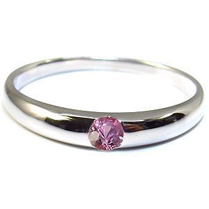 9月誕生石ピンクサファイヤを一粒使用したシンプルデザインの18金製リング(指輪)です。