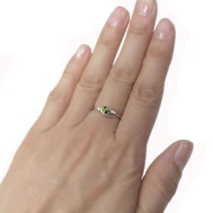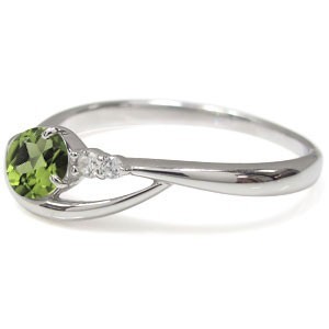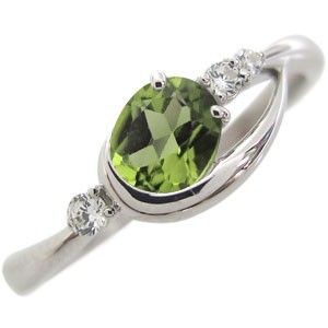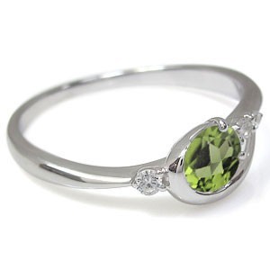 ■石名:主石 ペリドット(オーバル 約 4.0mm×5.0mm/天然石使用)脇石 ダイヤモンド(3石合計で約 0.046ct/天然石使用)