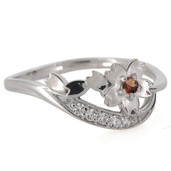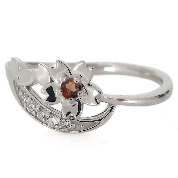 1月誕生石ガーネットを使用した10金製の、桜(フラワー)モチーフリング(指輪)です。