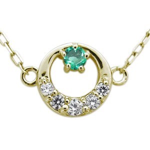 5月誕生石エメラルド使用した、10金製の三日月(ムーン)星(スター)モチーフネックレスペンダントです。