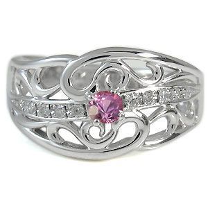 9月誕生石ピンクサファイアを一粒使用した、10金製の唐草デザインリング(指輪)です。