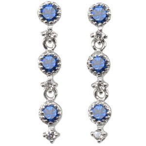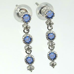 9月誕生石:ピアス:サファイア:10金ピアス9月誕生石サファイアを使用し、ミル打ちを施したゆらゆら揺れるトリロジータイプの10金製ピアスです。