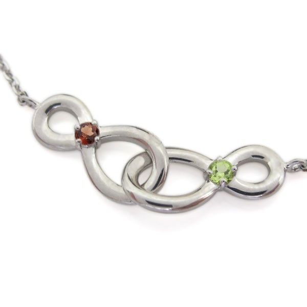 1月誕生石ガーネットを使用したプラチナ製のインフィニティ(無限)モチーフアンクレットです。