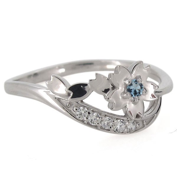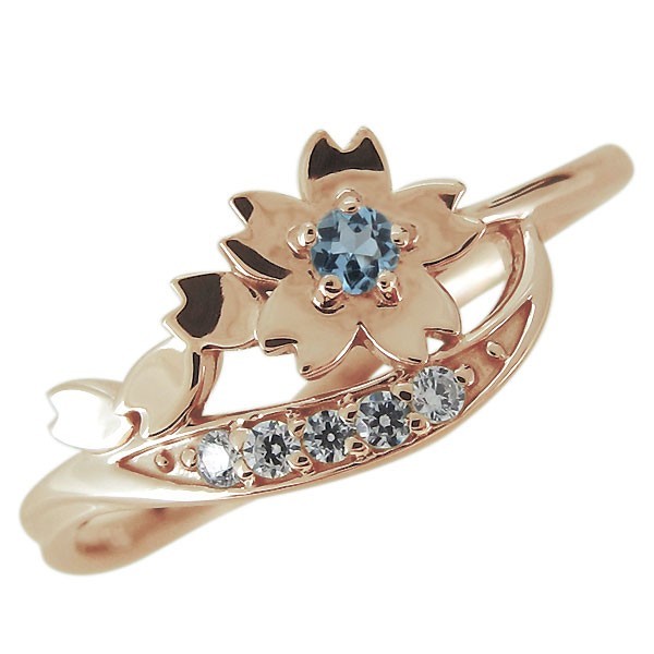 3月誕生石アクアマリンサンタマリアを使用した10金製の、桜(フラワー)モチーフリング(指輪)です。