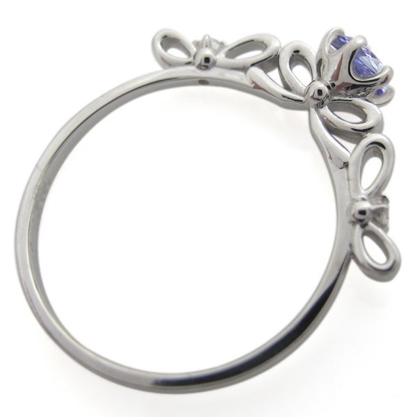 12月誕生石タンザナイトを使用したプラチナ製の、リボンモチーフリング(指輪)です。