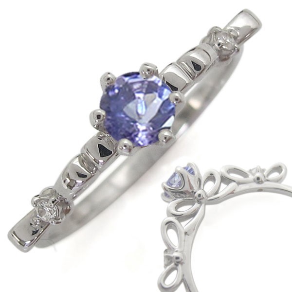 ■石名:主石 タンザナイト(約 4.0mm/天然石使用)脇石 ダイヤモンド(2石合計で約 0.029ct/天然石使用)