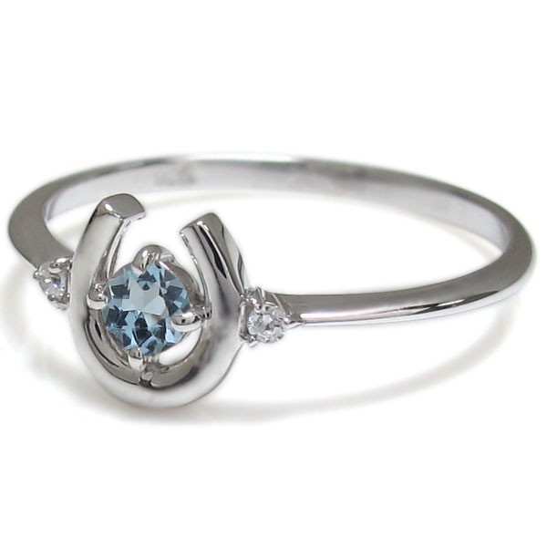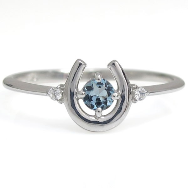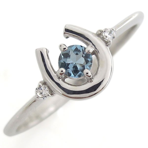 3月誕生石アクアマリンサンタマリアを一粒使用したプラチナ製の馬蹄(ホースシュー)モチーフリング(指輪)です。