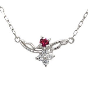 7月誕生石ルビーを使用した、天使の羽根(フェザー)をモチーフにしたプラチナ製ネックレスペンダントです。