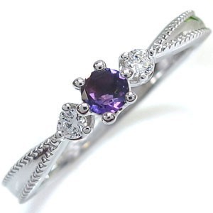 ■石名:アメジスト(約 3.0mm/天然石使用)脇石 ダイヤモンド(2石で約合計0.05ct/天然石使用)