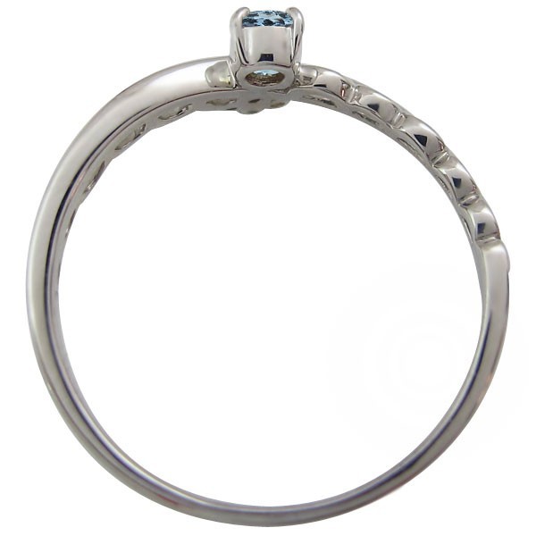 3月誕生石アクアマリンサンタマリアを一粒使用した、レースモチーフのプラチナ製リング(指輪)です。