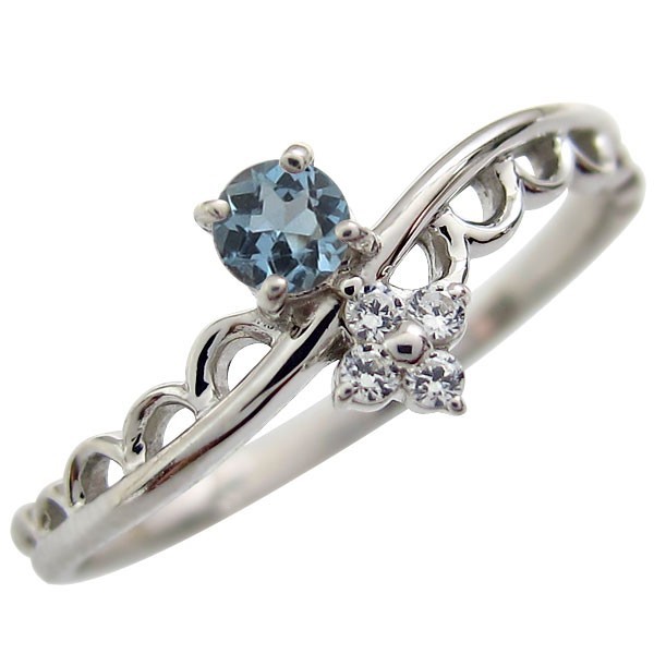 ■石名:主石 アクアマリンサンタマリア(約3.0mm 天然石使用)脇石 ダイヤモンド(4石合計で約0.04ct 天然石使用)