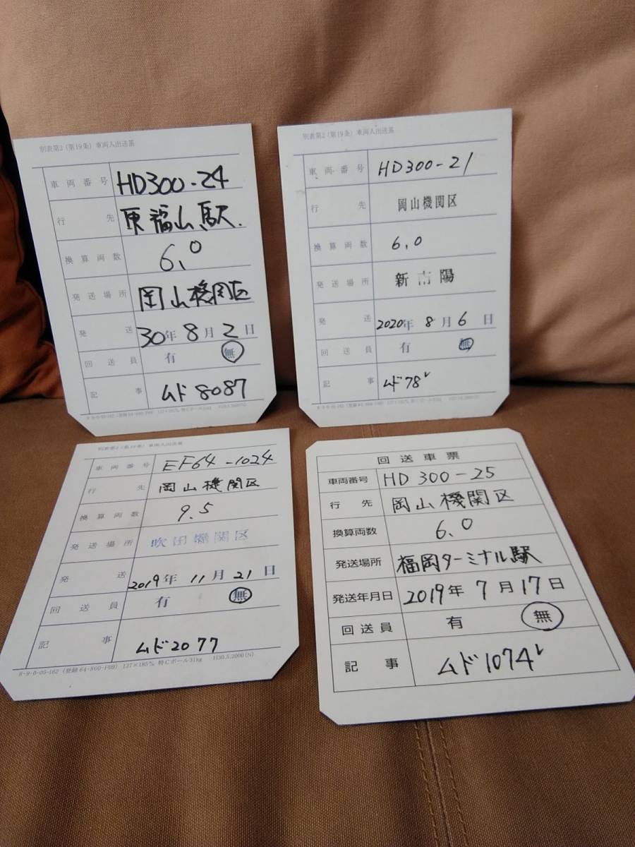 回送車票 EF64-1024 HD300 岡山機関区行 吹田機関区 福岡ターミナル 新南陽 JR貨物 JR西日本 国鉄 日本国有鉄道 サボ 貨物列車 甲種輸送