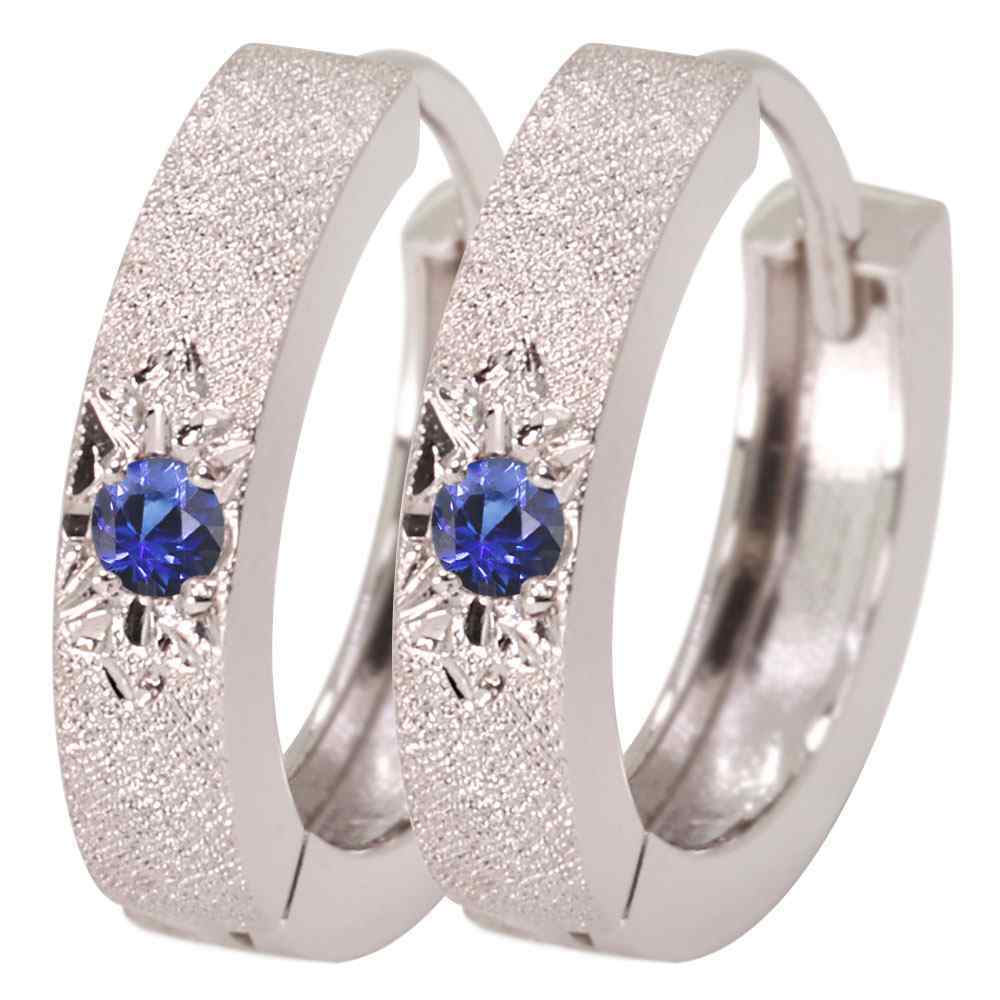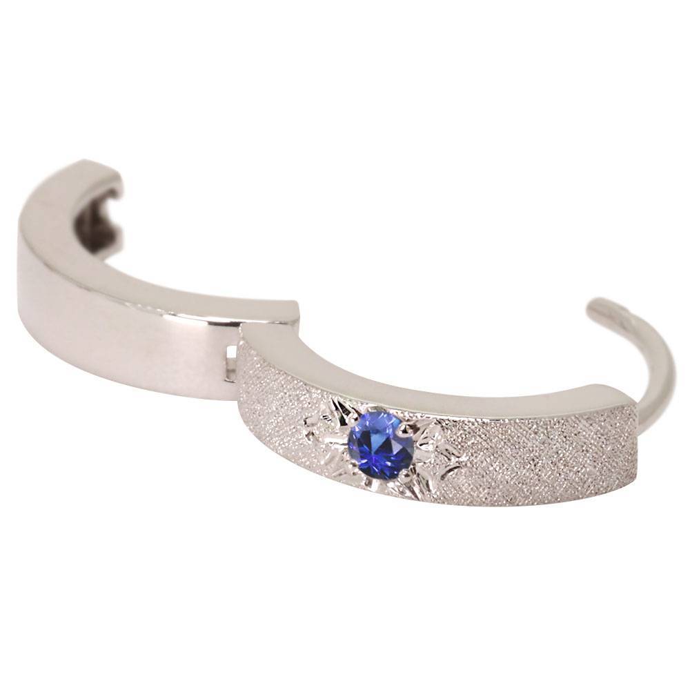 9月誕生石サファイアを使用したプラチナ製の、レディースフープピアスです。
