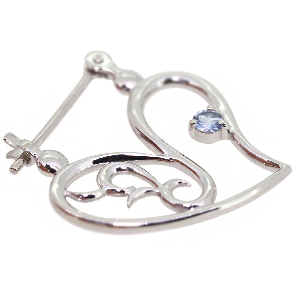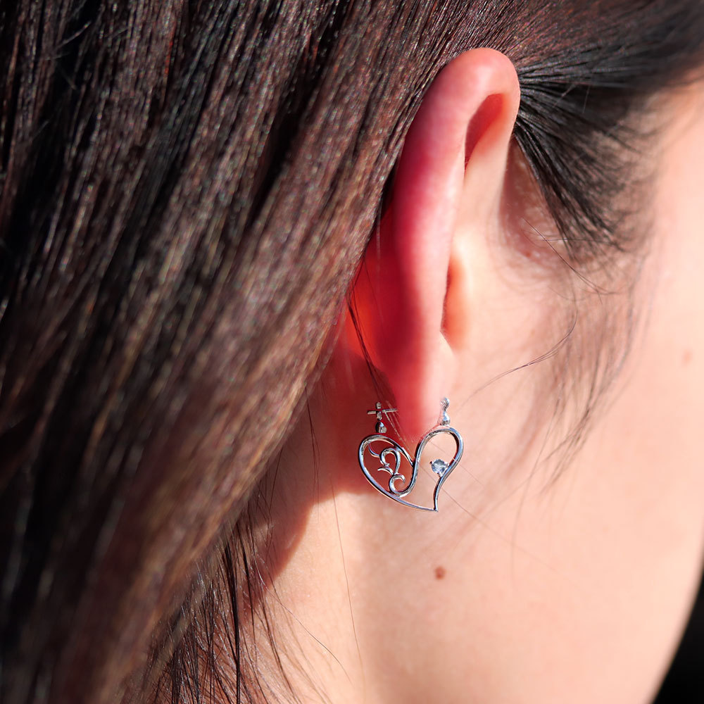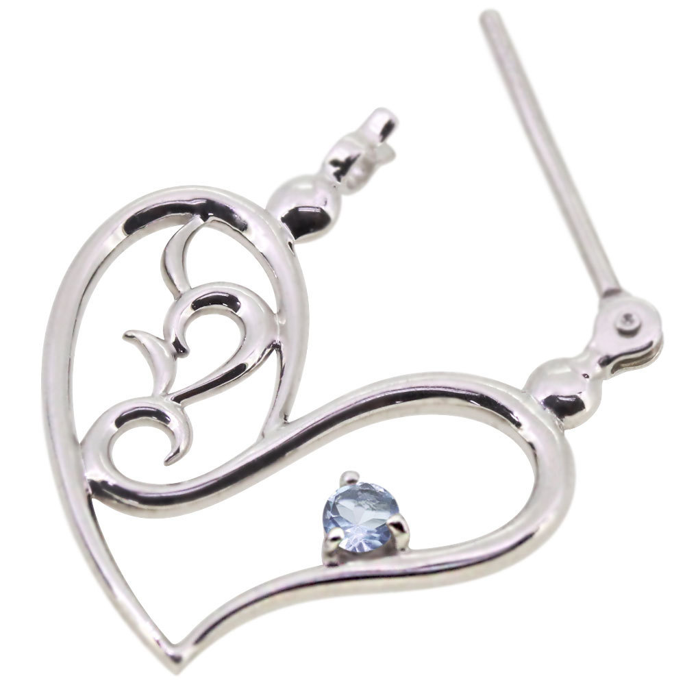 3月誕生石アクアマリンサンタマリアを使用したプラチナ製の、ハートモチーフのクロッシングピアスです。