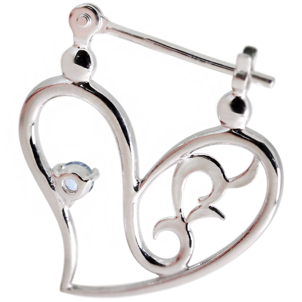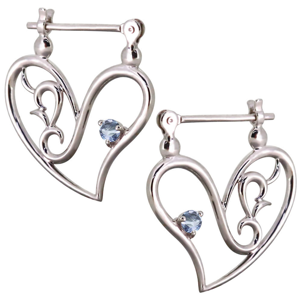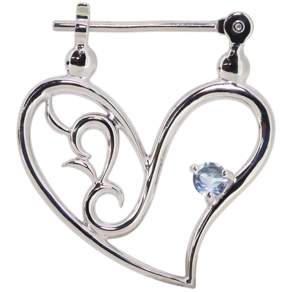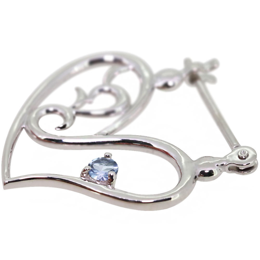 3月誕生石アクアマリンサンタマリアを使用したプラチナ製の、ハートモチーフのクロッシングピアスです。